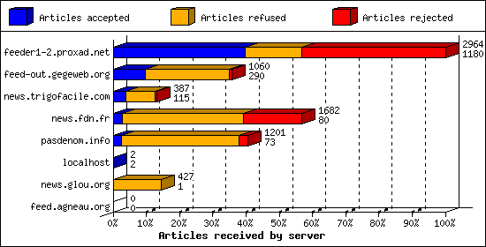 | 1 | feeder1-2.proxad.net | 288 | 2964 | 1180 | 501 | 1283 | 39% | 23:45:49 |